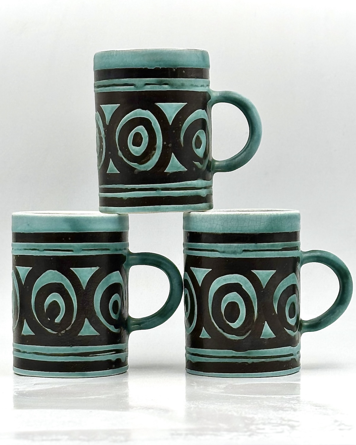 Tasses : diamètre 6 cm, hauteur 8,5 cm