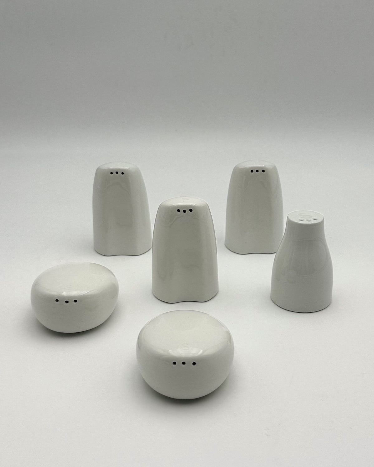 - Set de 6 salières, poivrières en porcelaine blanche
